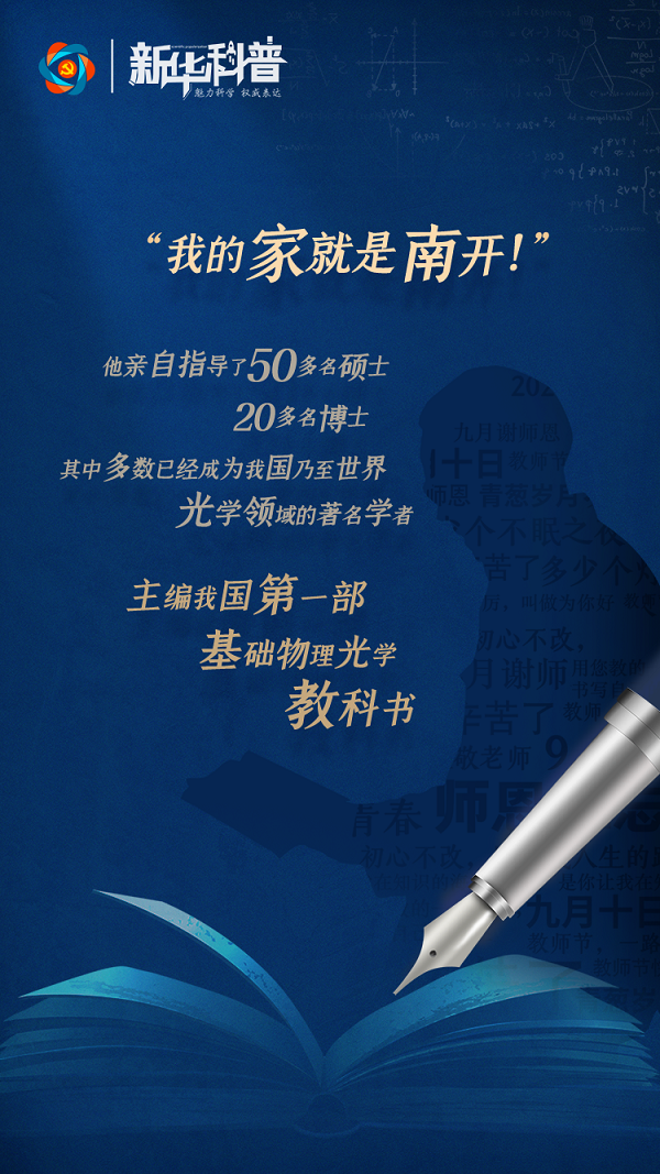 他是中国光学事业的领军人物。是国内光学界的“领导者”与“开拓者”。1952年母国光毕业于南开大学物理系,留校任教。历任物理系主任、光学研究所所长、副校长、研究生院院长、校长等职。