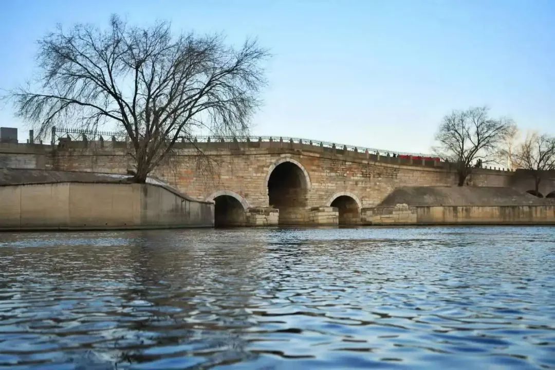 大运河在通州境内长达 42 公里,古时南来北往的船只、游客于这里的河面和码头上汇聚,使这里不仅形成了无数客栈、酒肆和粮仓,还造就了运河上最为壮丽的景观。中秋之夜,三孔桥洞中各映着一轮明月,皎洁天空中月如银盘,清清河水中月影浮动,水月交辉,衬托洁白如玉的长桥,使人疑在画中。这幅美景是通州的长桥映月景观,造就这一景致的桥正是赫赫有名的永通桥。因位于“州城西行八里许”,永通桥又被称为八里桥。八里桥最初为木桥,夜以继日的运输与不绝如缕的车队使这座木桥不堪重负。1446年,明英宗下令将木桥改建为石拱桥,并赐名“永通桥”,取永远通畅无阻之义。通惠河运粮船多为帆船,如建造普通形式拱桥势必阻碍漕船航行,八里桥将中孔建造得相当高耸,漕船可直出直入,因此有“八里桥不落桅”之说。