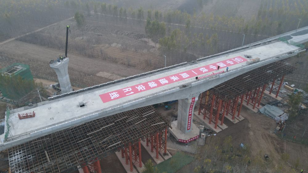 11月11日,雄安新区至北京大兴国际机场快线(R1线)跨津兴铁路现浇梁成功转体合龙。此段梁体长96.5米、重约4800吨,是R1线首座跨铁路现浇梁。