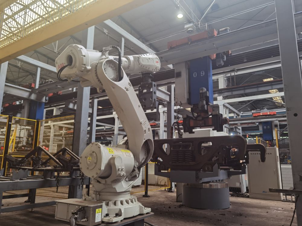 转向架制动梁具有保障列车转向、帮助列车基础制动等功能,是保障车辆平稳运行的关键。在石家庄车辆段,一台制动梁分解机械手正在有条不紊地工作,一旁的AGV智能搬运机器人早已准备就绪,在装车后自动导向至对应的检修流水线,整套流程一气呵成。
