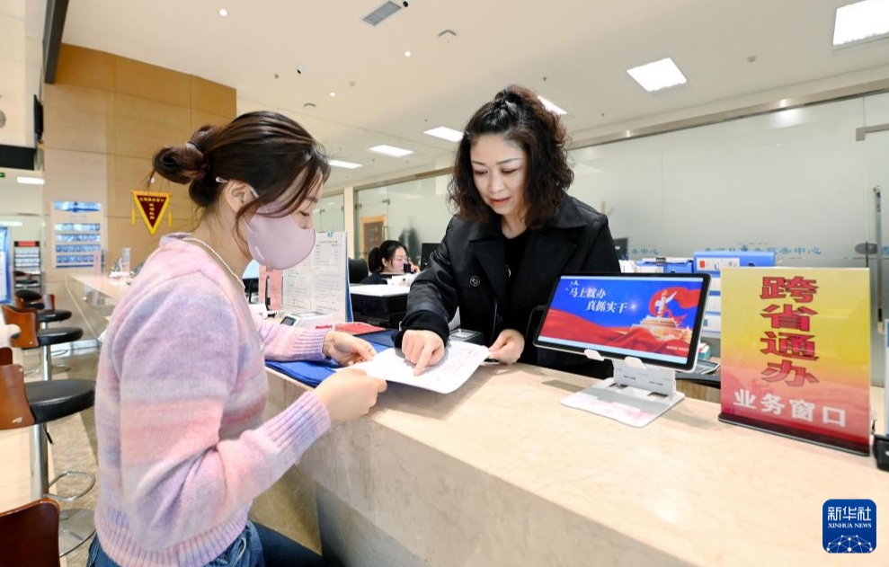 4月30日,工作人员在位于香河县的北京城市副中心政务服务中心一体化办事大厅为市民办理业务。