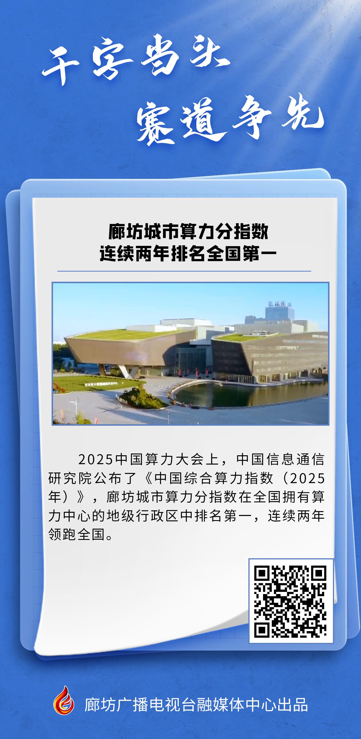 海报新闻丨【干字当头 赛道争先】 廊坊城市算力分指数连续两年排名全国第一