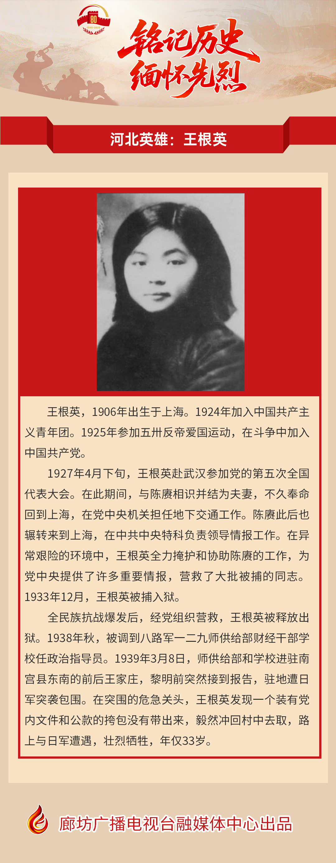 长图丨【铭记历史 缅怀先烈】河北英雄:王根英