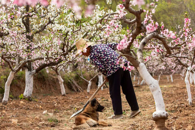 三河市东部山区村民在果林间劳作。于洪洲 摄