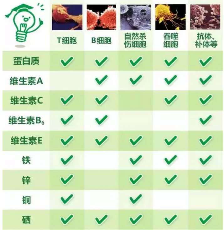 矿物质家族中的铁、锌、铜、硒也是提升免疫力的好帮手!铁能增强免疫细胞、中性粒细胞和吞噬细胞的吞噬功能,增强机体的抗感染能力。硒具有明显的免疫增强作用,维持细胞内硒的一定水平对保护机体健康、增强抗病能力具有重要意义。锌在免疫细胞T淋巴细胞的功能与体液免疫功能的维持上有重要的作用。