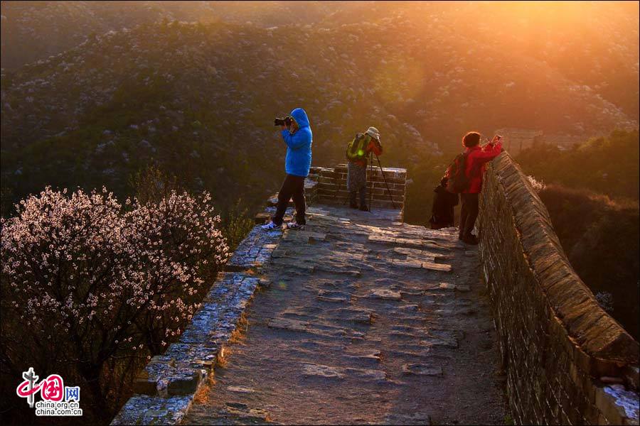 005、4月8 日,周六,龙的传人--京津冀千名太极爱好者长城展演。“养生旅游,健康旅游”现代旅游的深得人心,古长城为背景,清风徐徐,杏花佛面,赏心悦目哪!