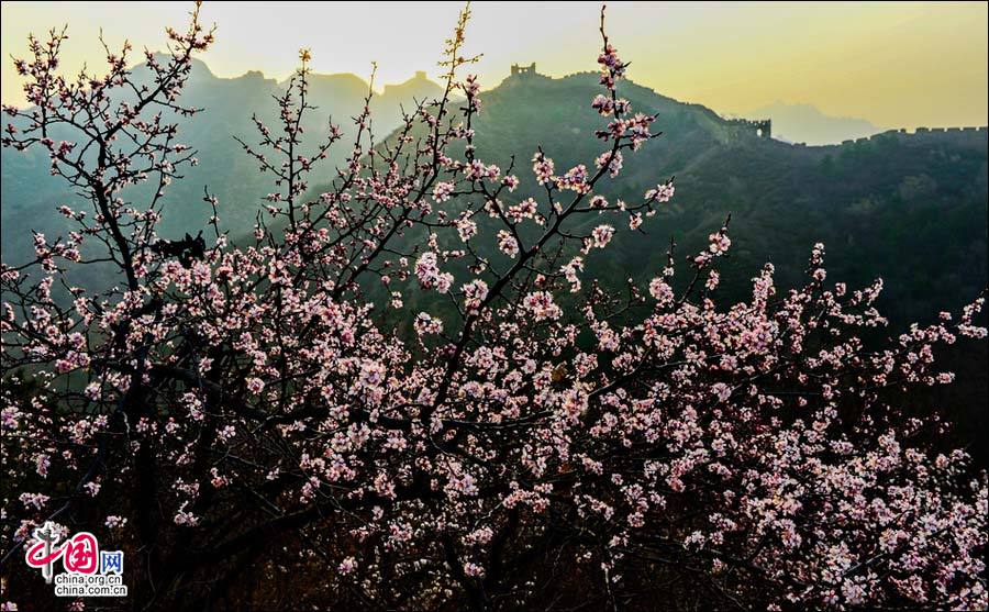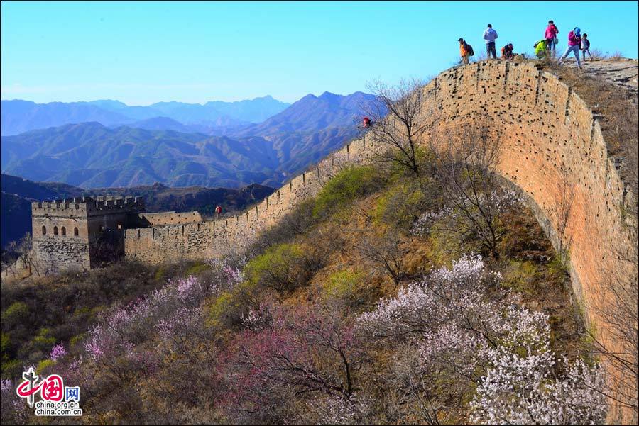 4月3 日,清明小长假第二天,金山岭杏花节开幕,明星助阵,古城丽影,全国千名旗袍佳丽走秀古长城金山岭。