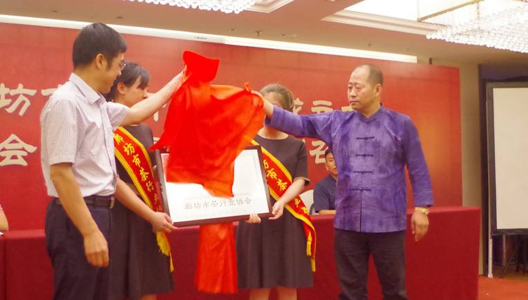 随后,廊坊市民政局党组副书记副局长李延庆同志和廊坊市茶行业协会会长边顺杰同志共同为廊坊市茶行业协会揭牌。