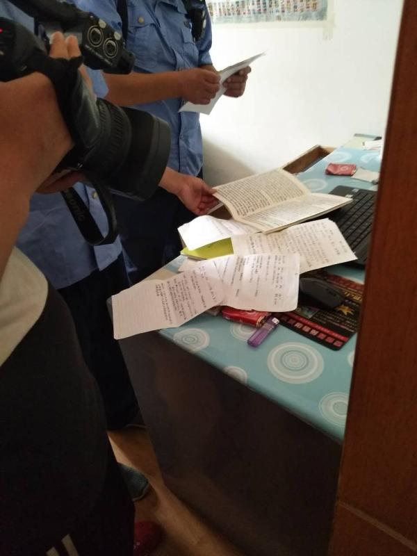 在传销人员藏匿之处,现场凌乱不堪,几个人混居一室,执法人员现场缴获传销人员的各种材料、笔记。