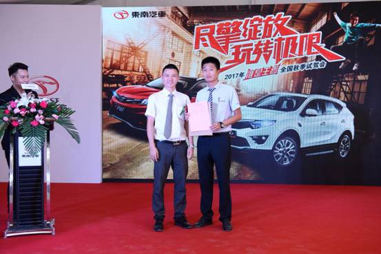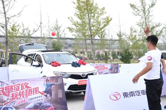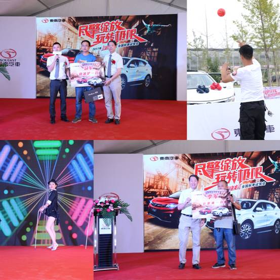 专业车手精彩绝伦的双车特技表演之后,现场来宾开启试驾体验活动。试驾科目包括直线加速、紧急避让、紧急制动、天窗投篮和盲驾入库等一系列的试驾动作。试驾结束后,根据试驾成绩,总成绩排名前三的来宾分别获得了主办方提供的精美礼品一份,同时试驾冠军也获得了10月22日沧州总决赛资格,总冠军将赢取东南DX3一年使用权!这一系列的试驾体验不仅考验来宾的操控技术,更是对新款东南DX7的全方位考验。