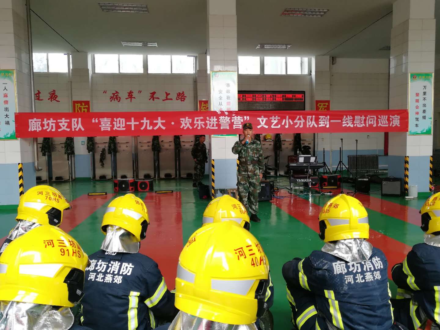 10月16日起,廊坊支队组织开展“喜迎十九大·欢乐进警营”文艺小分队到一线慰问巡演活动,把支队党委的关怀和慰问传达给连续奋战在安保一线的全体消防官兵、文职人员和专职队员,受到了基层官兵的热烈欢迎。