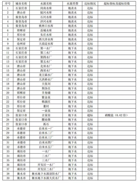 2017年11月地市级集中式生活饮用水水源水质状况 图片来源:河北环保发布