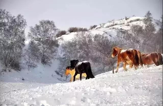 如果你冬季去,你会发现,坝上的冬美得如仙境一般~白雪覆盖在广阔无垠的草原上,雾凇、滑雪、雪原落日…坝上,有你没见过的“林海雪原”。