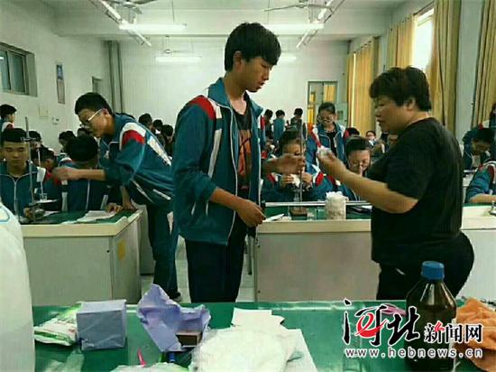 刘贺颖老师在课堂上做物理实验。大城四中供图