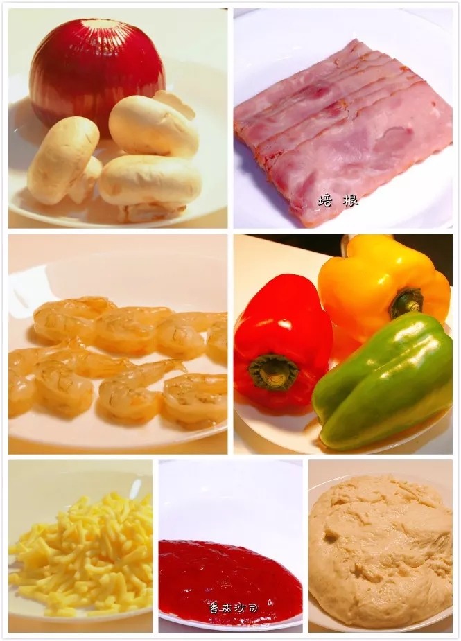 洋葱 / 虾仁 / 芝士 / 番茄沙司