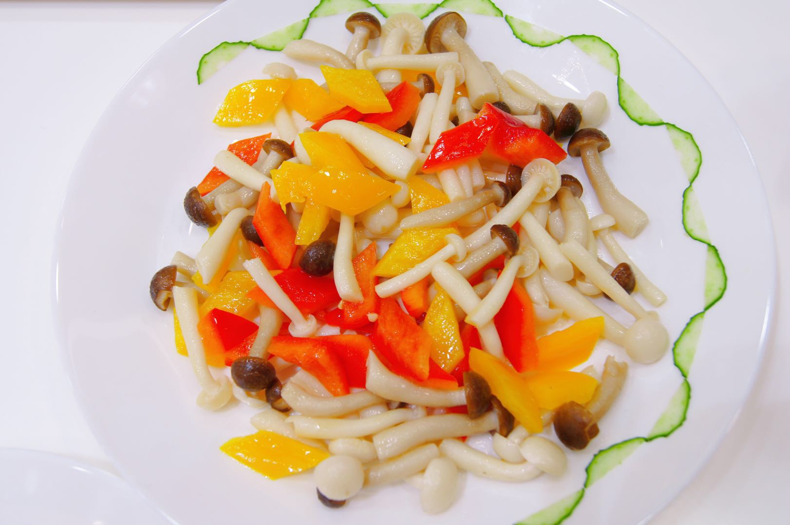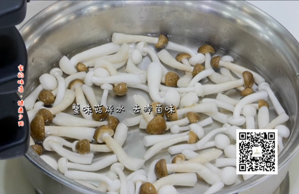1、将蟹味菇焯水,去掉菌味,焯至水变色,取出备用。