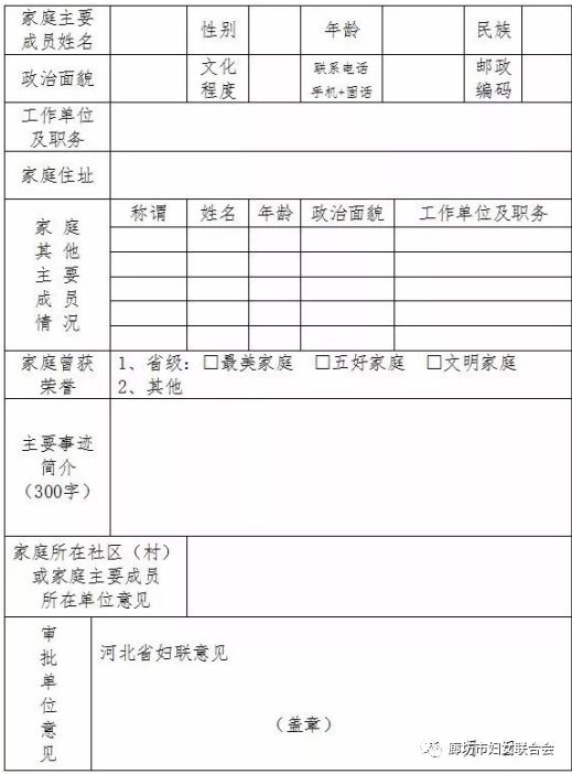 附:2018年度河北省“最美家庭”推荐表