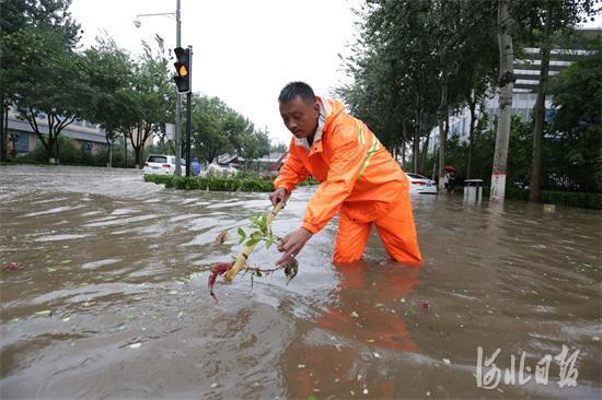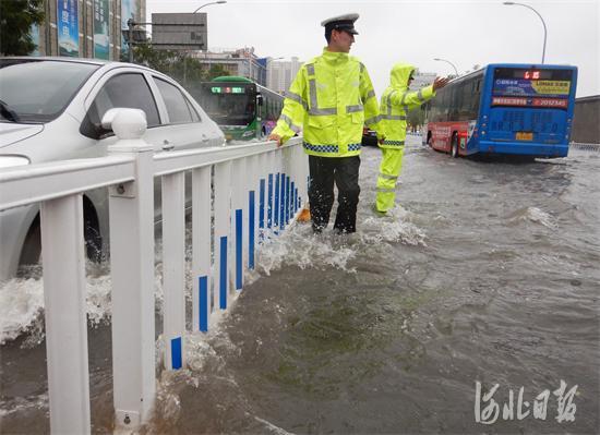 廊坊交警、市政、环卫、供电、园林等部门在大雨中依然坚守在一线。 陈童摄