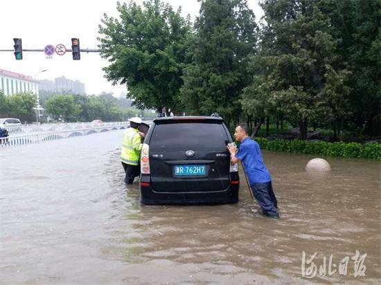 雨情紧急,廊坊市交警部门出动490人,根据道路积水情况,及时组织防汛抢险道路管制,现场封闭警戒,维护疏导交通。由于解放桥下穿铁路桥车行道积水过深,交警部门于上午6:30紧急启动交通管制,并加大警力做好值守。