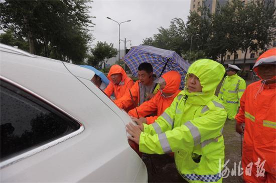 连夜暴雨席卷廊坊,交警、建设、城管等多部门联动,疏导路面交通、清除路面积水、消除安全隐患。 刘向摄