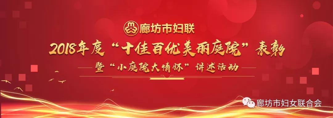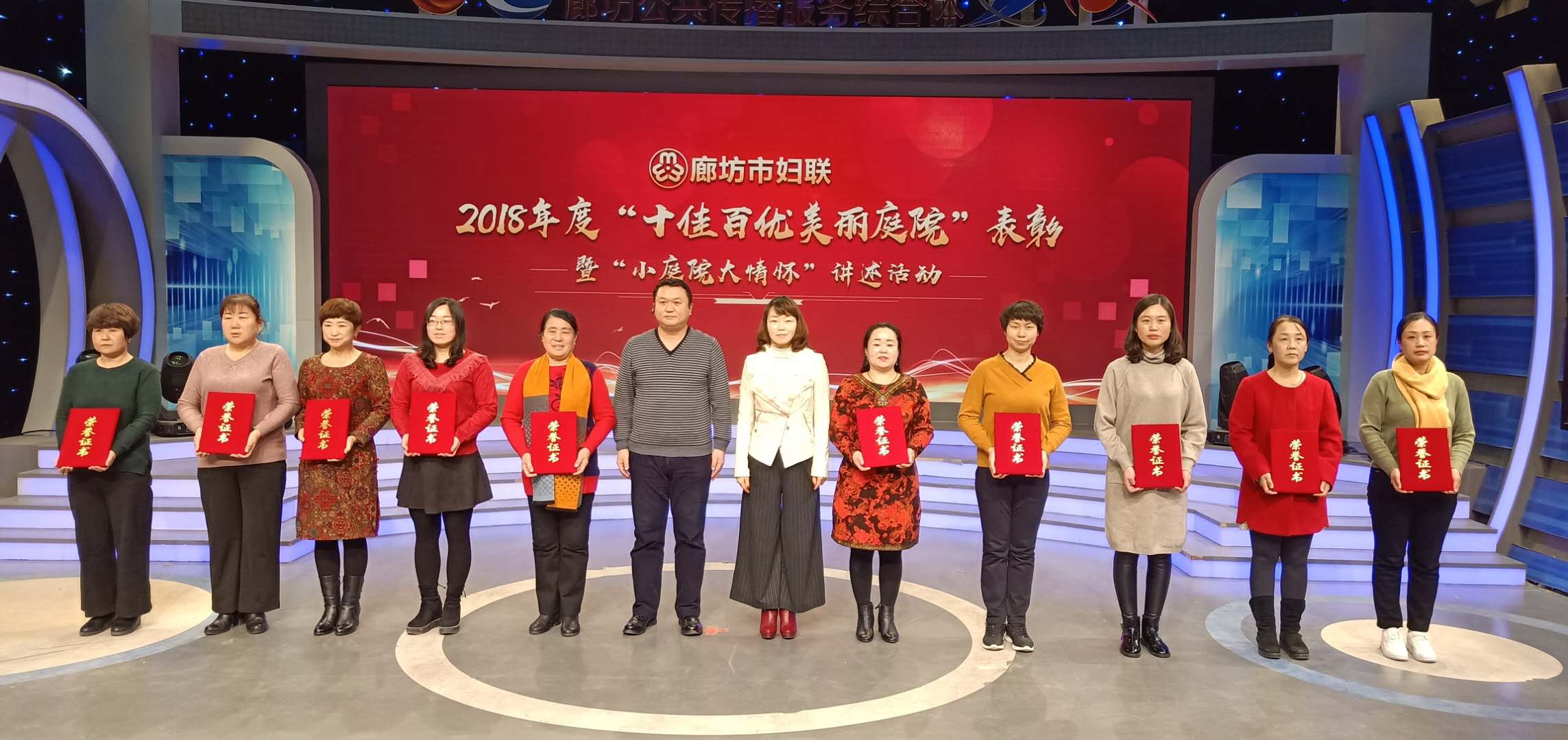 为进一步深化“美丽庭院”创建工作,助力美丽乡村建设,2018年市妇联开展了寻找“美丽廊坊·十佳百优美丽庭院”活动,活动得到万千乡村女性的积极响应和大力支持,为激发创建热情,表彰选树典型,12月28日,市妇联举行了“十佳百优美丽庭院”表彰暨“小庭院大情怀”讲述活动,各县(市、区)妇联分管主席、宣传部长、“十佳百优美丽庭院”获奖代表参加了活动。