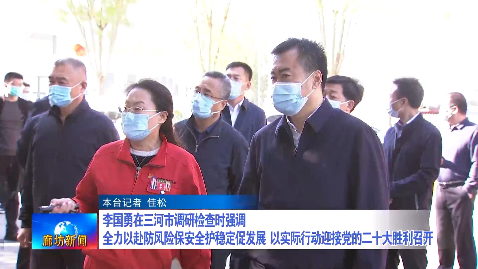 10月9日,市长李国勇带领有关部门负责同志到三河市调研检查。他强调,要深入贯彻落实党中央“疫情要防住、经济要稳住、发展要安全”重要要求,全力以赴防风险、保安全、护稳定、促发展,把各项工作往深里做、往细里做、往实里做,切实维护社会大局持续和谐稳定,以实际行动迎接党的二十大胜利召开。