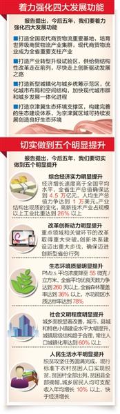 两大奋斗目标、四大发展功能和五个明显提升,报告对今后五年奋斗目标和相关指标的设置,鼓舞人心。