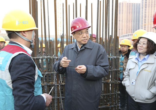 22日,在赤峰污水处理项目工地,李克强走上脚手架与农民工交谈。他说,你们为城市地上工程贡献了力量,现在又做地下工程,为长久发展打基础,你们是城市建设的双功臣。城市地下设施历史欠账多,未来要做更多地下工程,你们把这方面的技术学好,将来会有更多活干!