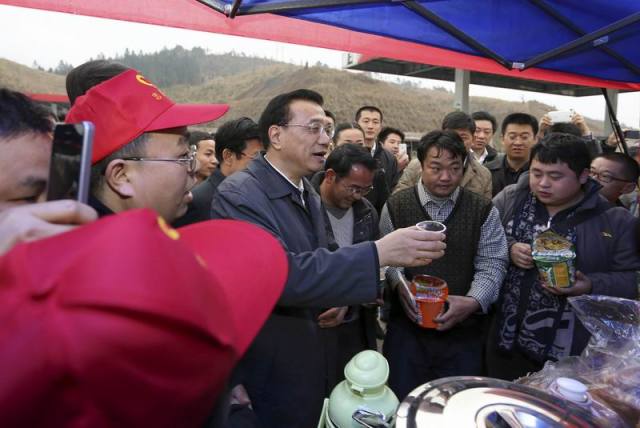 李克强撕开纸盖,倒进开水,一碗老坛酸菜面顿时香气四溢。14日在贵州黎洛高速农民工服务站,总理将泡好的面端给返乡农民工吴奇。李克强对在场农民工说,这是家乡的味道,召唤你们尽快回家。国家正加快推进新型城镇化进度,让西部进城务工人员尽早就近就业。
