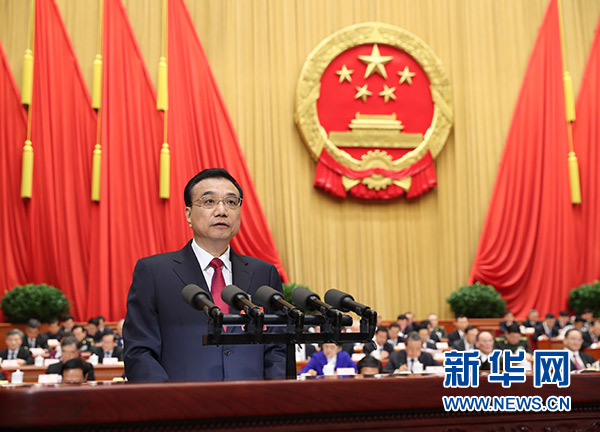 3月5日,第十二届全国人民代表大会第五次会议在北京人民大会堂开幕。国务院总理李克强作政府工作报告。 新华社记者 庞兴雷 摄