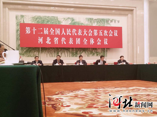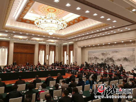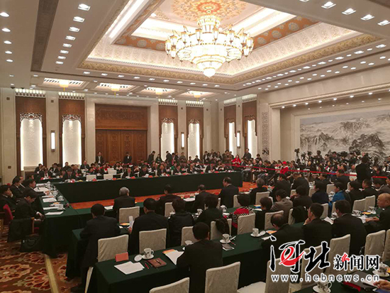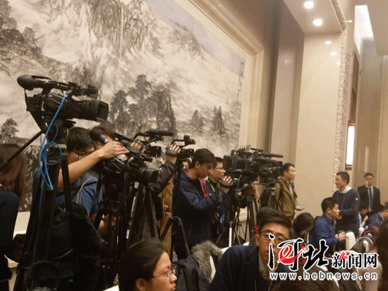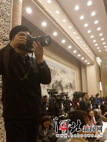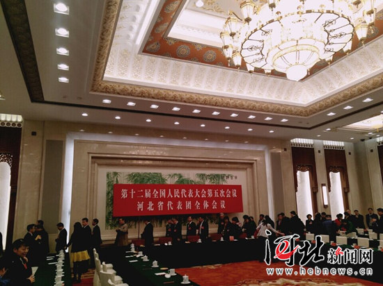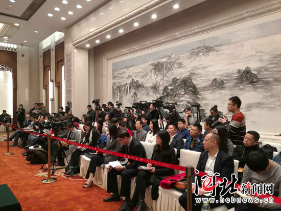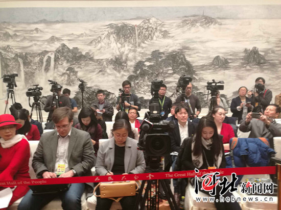 3月7日上午,十二届全国人大五次会议河北代表团在人民大会堂新闻发布厅举行全体会议,并对中外媒体开放。开放日活动现场。