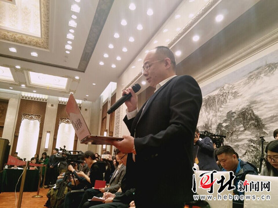 3月7日上午,十二届全国人大五次会议河北代表团在人民大会堂新闻发布厅举行全体会议,并对中外媒体开放。李怀代表在发言。