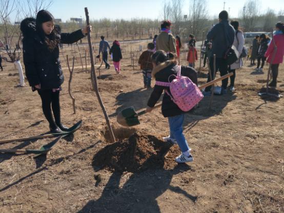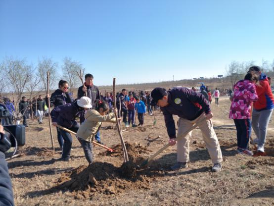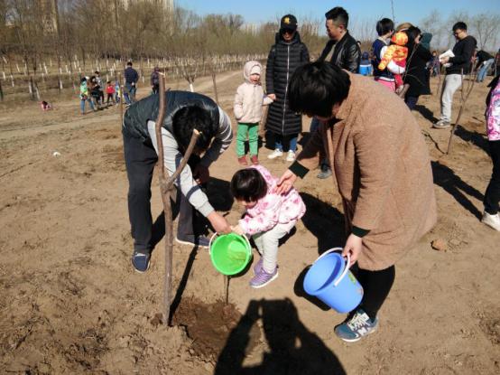 工作人员告诉我们,“植树时,首先树坑要挖的大一点,尽量选择土质松软的地方;填土时,要把树苗提起,尽量让树苗的根保持垂直。”在植树现场,最开心的就是孩子们,有的拿着铁锨铲土,有的提着水桶接水,有的妈妈一边扶着树苗,一边拿着水杯给孩子喂水,有的妈妈在给孩子拍照,有的爸爸负责帮孩子清理土坑里的石块,有的爸爸帮着一起挖坑。