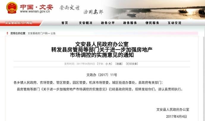 实行住房限购的区域为文安县辖区。