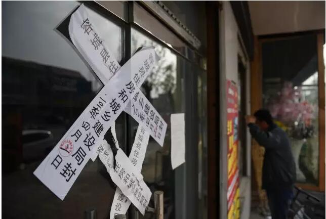 这是4月5日拍摄的河北省容城县一处被关闭的房产中介机构。 新华社记者王晓摄