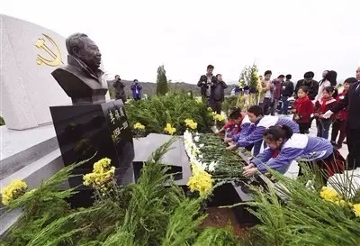 手持一束黄菊,向着墓碑深深鞠躬,未抬头,泪水已涌出。