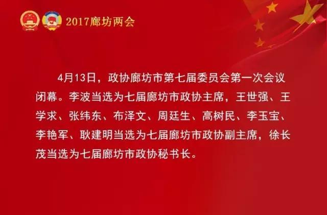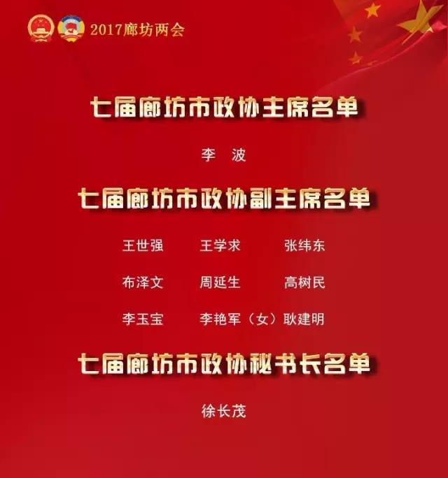 摘要:新一届廊坊市政协主席、副主席、秘书长名单、简历全公布