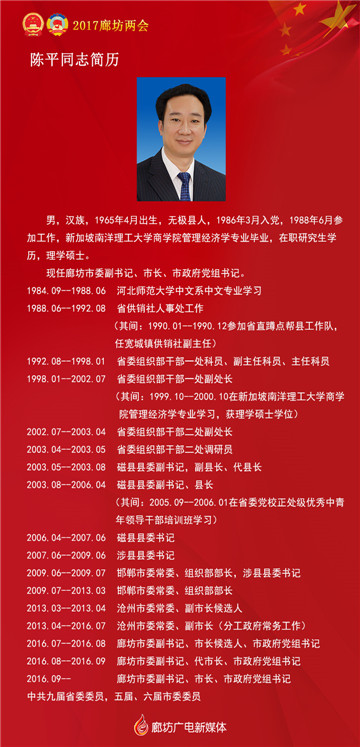 (图文版)陈平当选廊坊市市长!廊坊市长、副市长名单、简历全公布