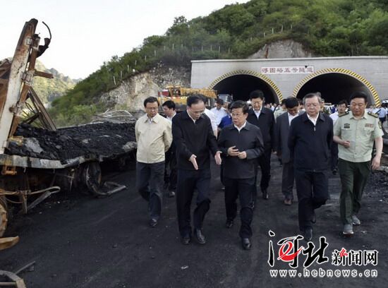 赵克志许勤等在事故现场指导处置工作。 记者郭昭摄