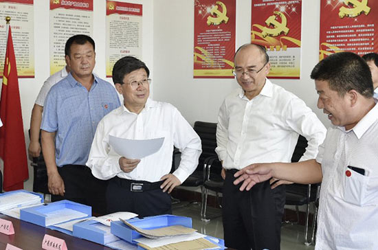 6月21日,省委书记、省人大常委会主任赵克志,省委副书记、省长许勤等在雄安新区调研。这是赵克志、许勤到容城县白塔村调研时,在村党员活动室详细了解基层党组织建设情况。