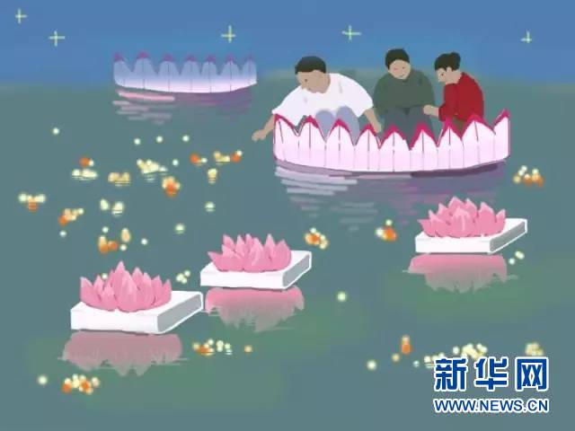 姑娘们最喜欢放荷灯,荷灯的精美表现出了她们巧夺天工的手艺。新华网原创手绘