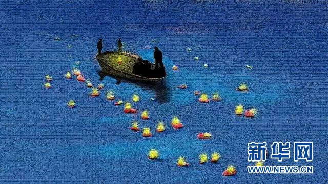 此时此刻,白洋淀是灯的淀泊,灯的世界。新华网原创手绘