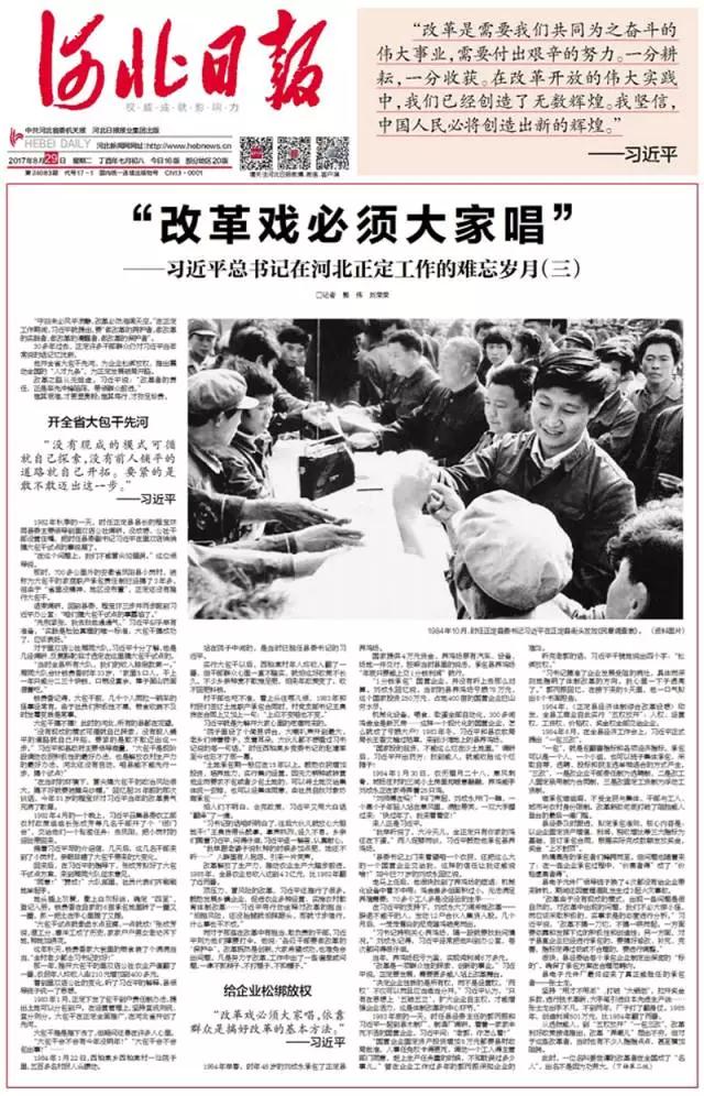 “守旧未必风平浪静,改革必然海阔天空。”在正定工作期间,习近平就提出,要“做改革的拥护者,做改革的实践者,做改革的清醒者,做改革的保护者”。