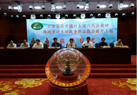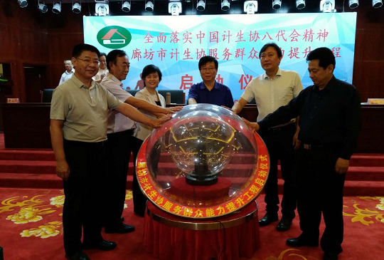 张春燕宣布“全面落实中国计生协八代会精神廊坊市计生协服务群众能力提升工程”正式启动,王景水、张春燕等领导共同按动启动球。启动仪式后,王景水进行专题授课。(董坤)