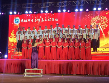 为了迎接党的十九大胜利召开和1090名新生的顺利入学,9月28日晚,廊坊市电子信息工程学院举办了“军民心向党 喜迎十九大”庆国庆·迎新生联欢会。