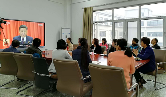 在北华航天工业学院,所有的会议室、教室、报告厅都是座无虚席,师生们都在认真的观看十九大开幕盛况,报告中总书记对青年的深切关怀和殷切期待让大家备受鼓舞。