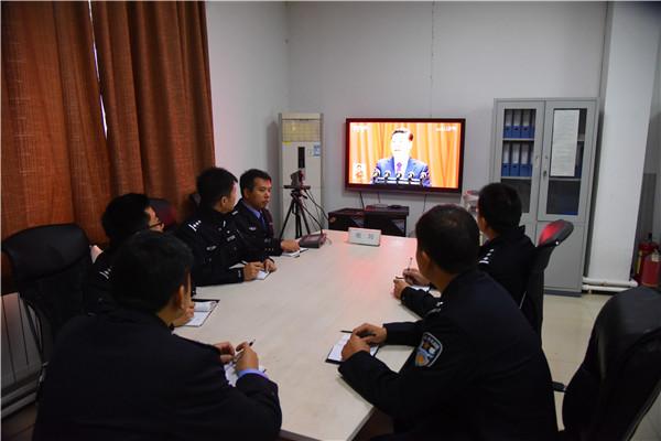 在廊坊市公安局三楼会议室,市公安局党委成员与机关民警一道早早地来到会议室,等待十九大盛会的开幕。同志们聚精会神,认真观看大会开幕式和习近平总书记代表十八届中央委员会向大会作的报告。按照市局部署,观看开幕式后,全市公安机关将迅速组织民警开展学习讨论。主要包括:对十九大重要意义的感想和认识;对十八大以来党和国家事业取得的伟大成就及其经验的感想和认识;对十九大报告中提出的重大目标任务和决策部署的感想和认识;联系公安工作特别是本地和警种部门实际贯彻落实十九大精神的初步思路举措。