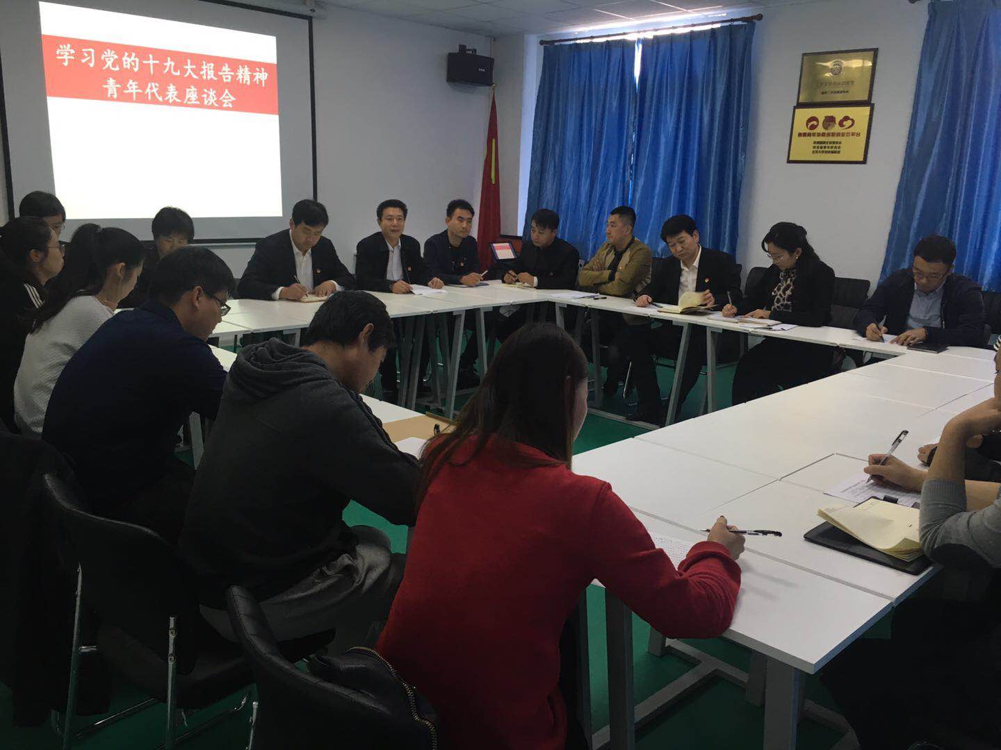 党的十九大报告中提到,“中国梦是历史的、现实的,也是未来的;是我们这一代的,更是青年一代的。中华民族伟大复兴的中国梦终将在一代代青年的接力奋斗中变为现实。” 在学习党的十九大报告精神座谈会上,青年代表以及大学生志愿者展开了热烈讨论,对十九大报告内容进行深刻的学习, 并结合自身学习、工作、生活,畅谈“中国梦”、“青春梦”。 大家纷纷表示,作为新时期的青年一代,要继续强化政治理论学习,提升专业知识水平,以饱满的热情投身于社会主义伟大实践当中。
