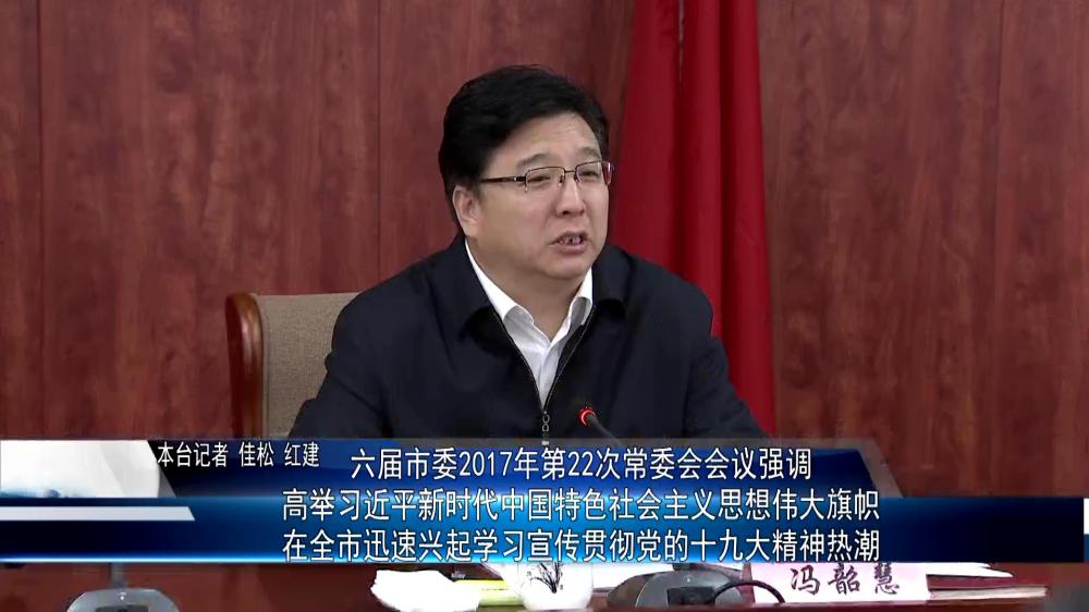 10月26日下午,市委书记冯韶慧主持召开六届市委2017年第22次常委会会议,传达学习党的十九大、十九届一中全会和10月20日省委常委会会议精神。会议强调,全市各级党委(党组)要把学习宣传贯彻党的十九大精神作为首要政治任务,高举习近平新时代中国特色社会主义思想伟大旗帜,增强“四个意识”,树牢“四个自信”,不忘初心,牢记使命,坚决维护习近平总书记核心地位,坚决维护党中央权威和集中统一领导。各级党员领导干部要反复研读十九大报告,带头学、带头用,用习近平新时代中国特色社会主义思想武装头脑、指导实践、推动工作,在全市迅速兴起学习宣传贯彻党的十九大精神的热潮。