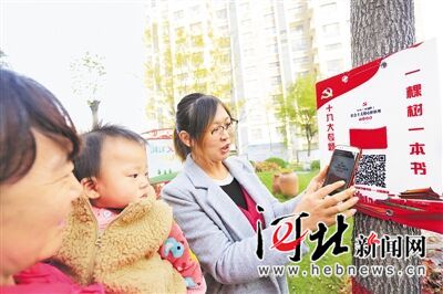 每一棵树上挂着一个二维码,扫一扫便可免费阅读十九大专题书籍——这样的新鲜事发生在廊坊市安次区亿合社区。为了方便居民学习党的十九大精神,亿合社区将创新政策理论宣传与构建“全民阅读推广服务体系”相结合,以小区里的树为“载体”建起开放式数字图书馆,让十九大精神进家入户。据了解,这一做法将逐步在全区推广。